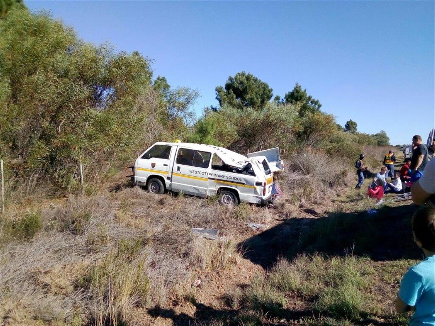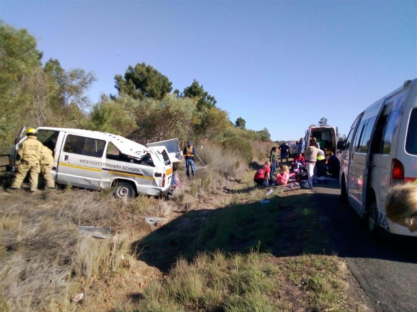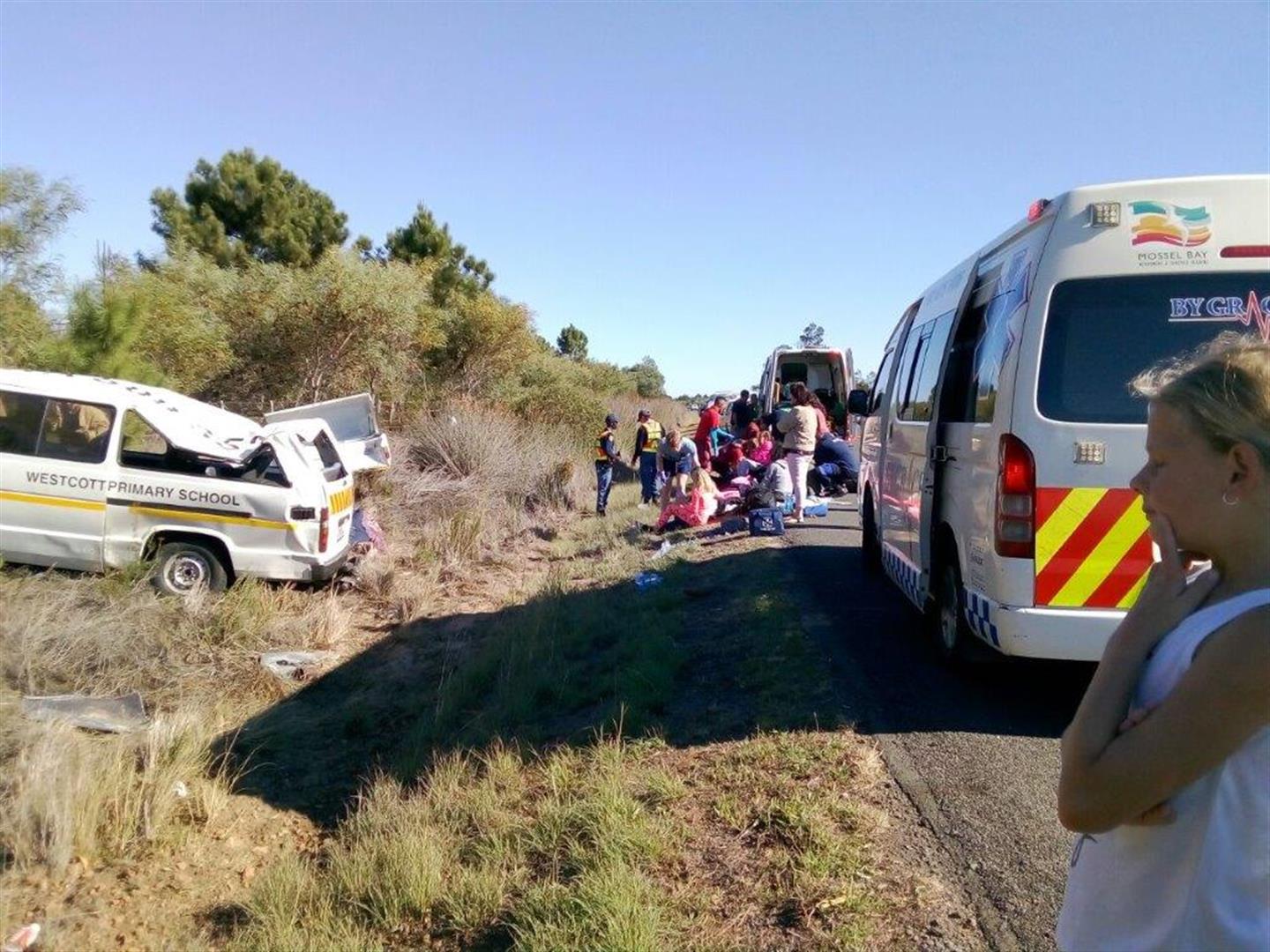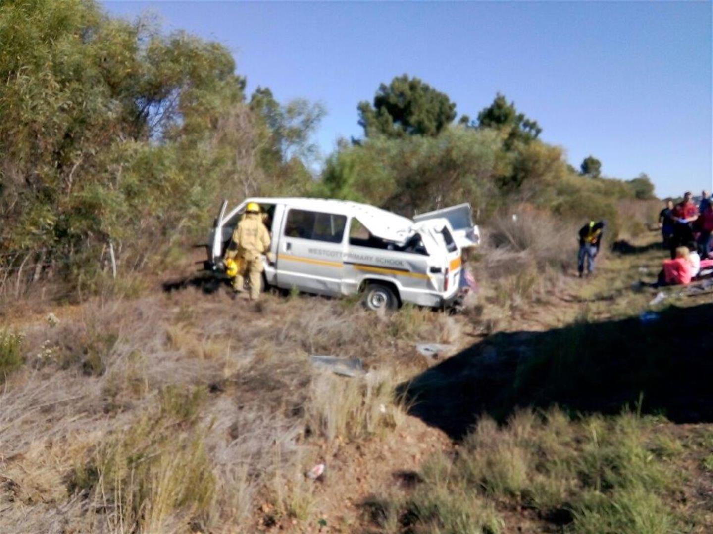 ‘n Onbekende aantal laerskoolleerders van Westcott Primary is beseer in ‘n ongeluk vroeër vanoggend toe ‘n band van die bussie waarmee hulle vanaf Knysna na Dieprivier onderweg was, blykbaar gebars en die voertuig die pad verlaat en gerol het.