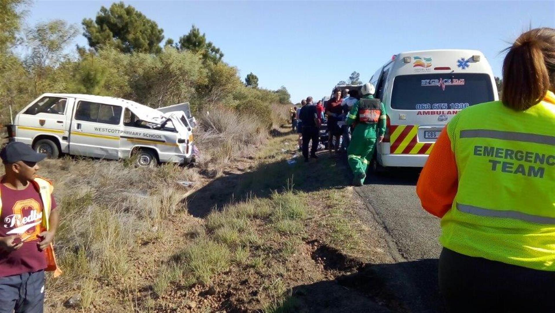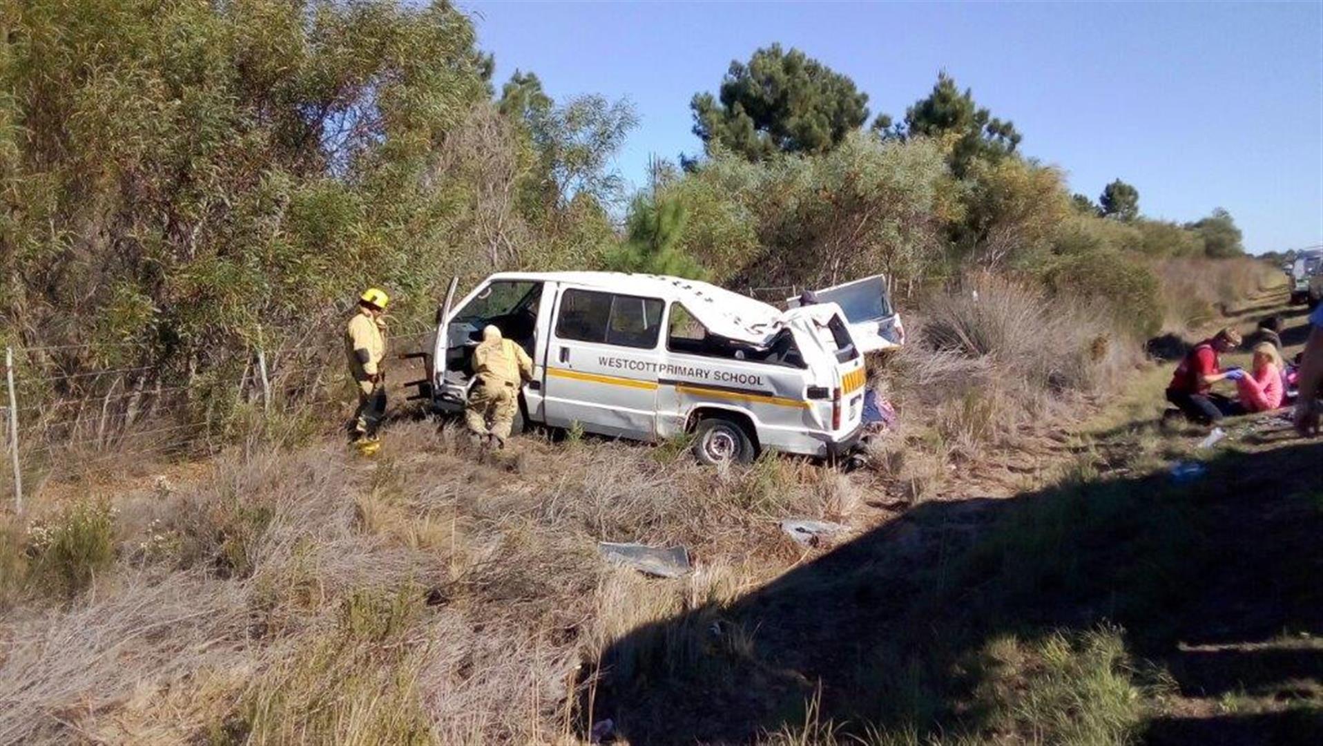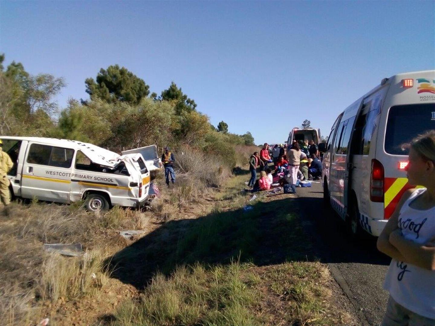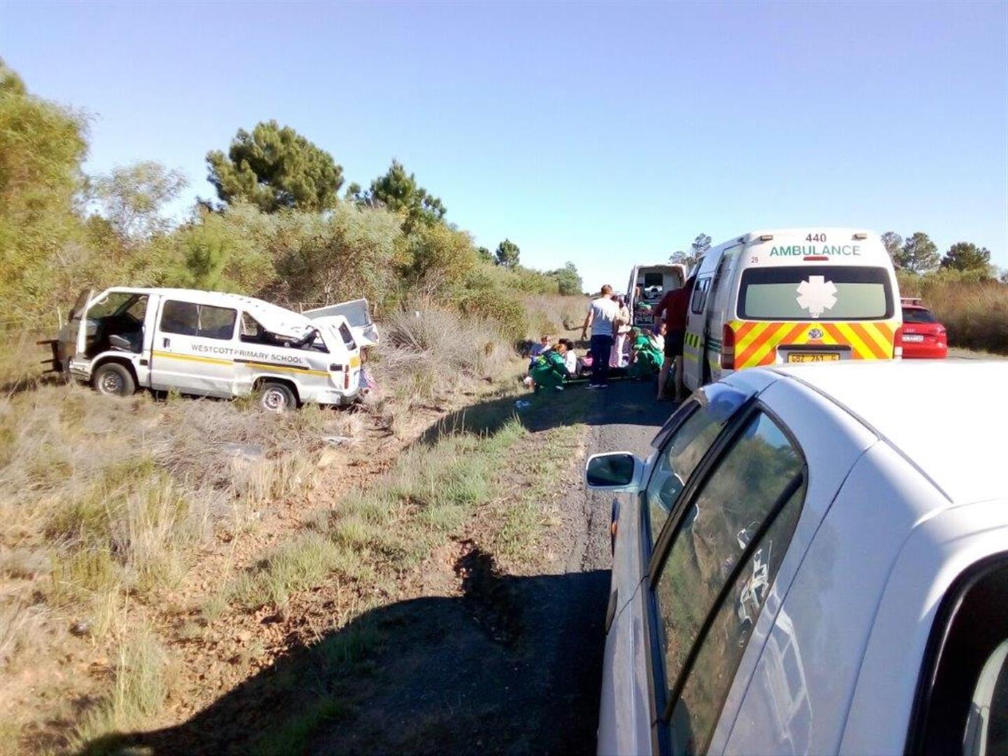 ‘n Onbekende aantal laerskoolleerders van Westcott Primary is beseer in ‘n ongeluk vroeër vanoggend toe ‘n band van die bussie waarmee hulle vanaf Knysna na Dieprivier onderweg was, blykbaar gebars en die voertuig die pad verlaat en gerol het.