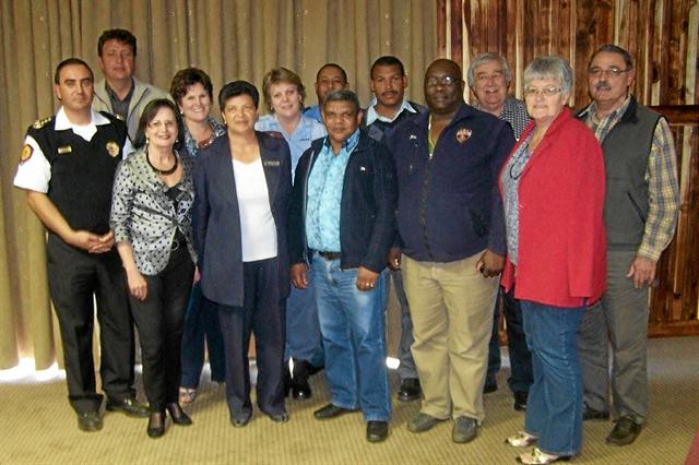 Op die foto verskyn die uitvoerende burgemeester, rdl. Emor Nel; die uitvoerende onder-burgemeester, rdl. Julian Mekeur; ander raadslede en amptenare van die Hessequa munisipaliteit saam met van die sprekers en ander lede van die Ramp Advies Forum.