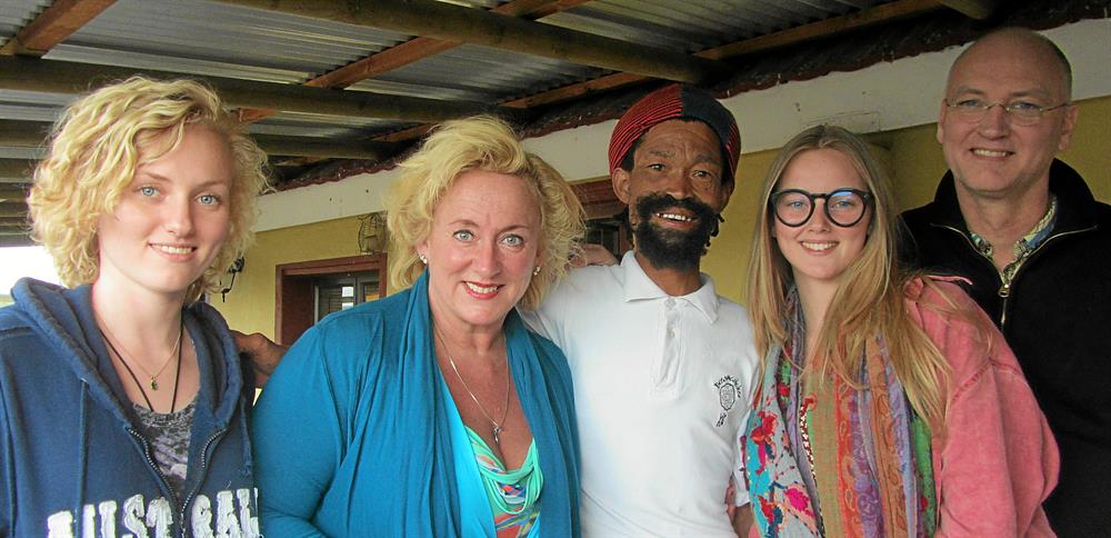 From left Iona Bloemen, Karin Bloemen, a local Melkhoutfontein resident, 'Yellow' Eiman, Eliane Bloemen and Marnix Bloemen during their visit to Melkhoutfontein.