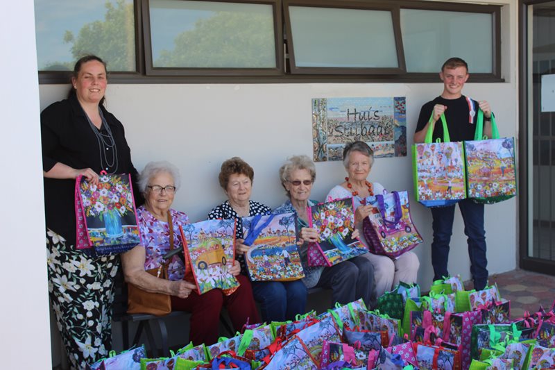 STILBAAI NUUS - 'n Anonieme weldoener met wortels in Riversdal en Stilbaai het 110 pragtige, veelkleurige "Portchie" sakke aan die inwoners van Huis Stilbaai geskenk.