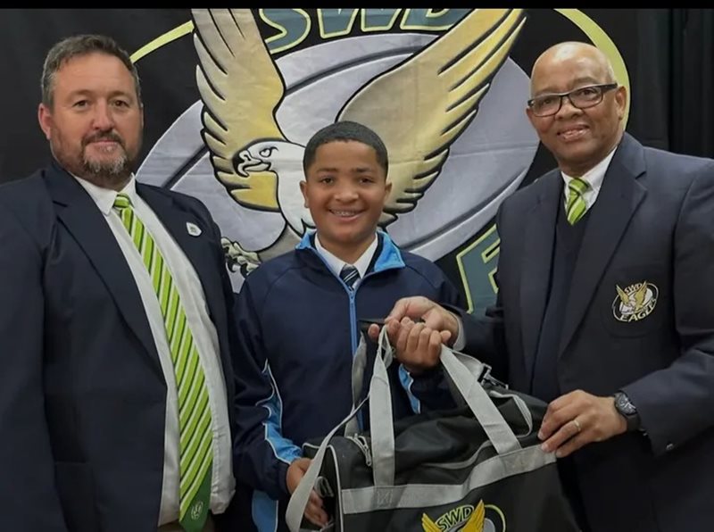 Hy het sy erekleure in ontvangs geneem vanaf Dawie Jonker en Pieter Conradie, skolerugbyverteenwoordigers van SWD.
