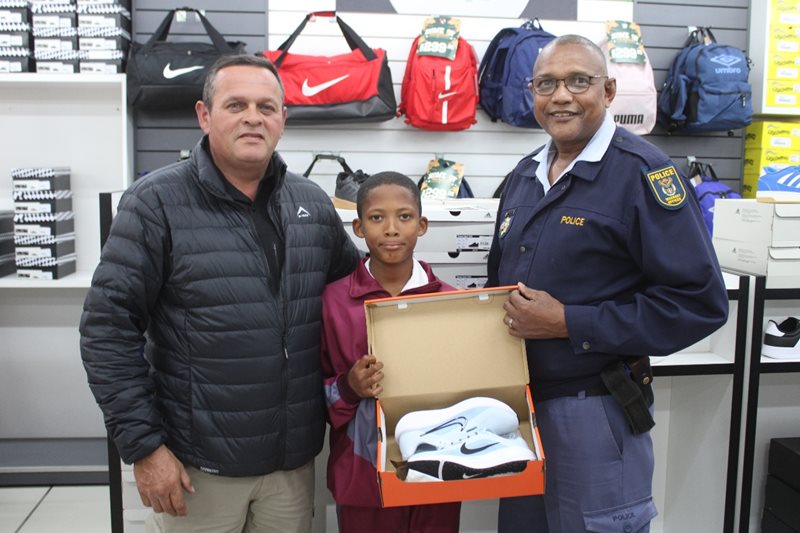 Die jong atleet het self die kleur en tipe skoene gekies, en met ’n breë glimlag sy dank teenoor Theart uitgespreek.