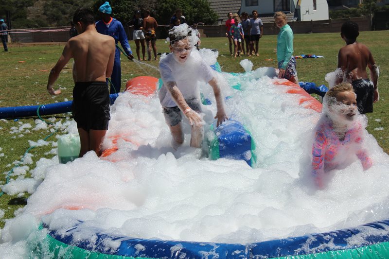Die skuim glybaan is veral druk besoek en daar kon die groter kinders hulle kreatiwiteit in water en skuim uitleef.