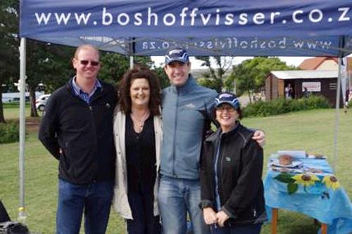 Boshoff Visser personeel by die sportdag. Van links is Stiaan Dreyer, Sonja Conradie (Genesis medies), G Oberholser en Fienie Steyn.